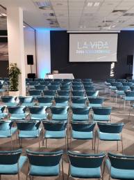 - Ajánlatunk teljeskörű: Tartalmazza a kényelmes székeket, a hangosítást és a projektort is